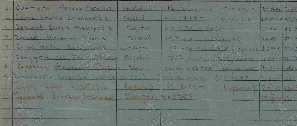 Дата и место призыва __.__.1943, Нерчинско-Заводский РВК, Читинская обл., Нерчинско-Заводский р-н