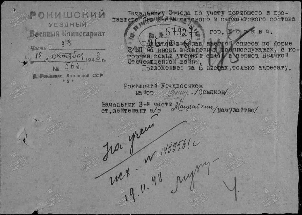 В мае 1945 года обьявлен пропавшим без вести.