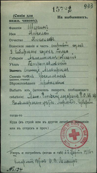 Акмолинская обл., Омский уезд, ст. Усть-Заостровская