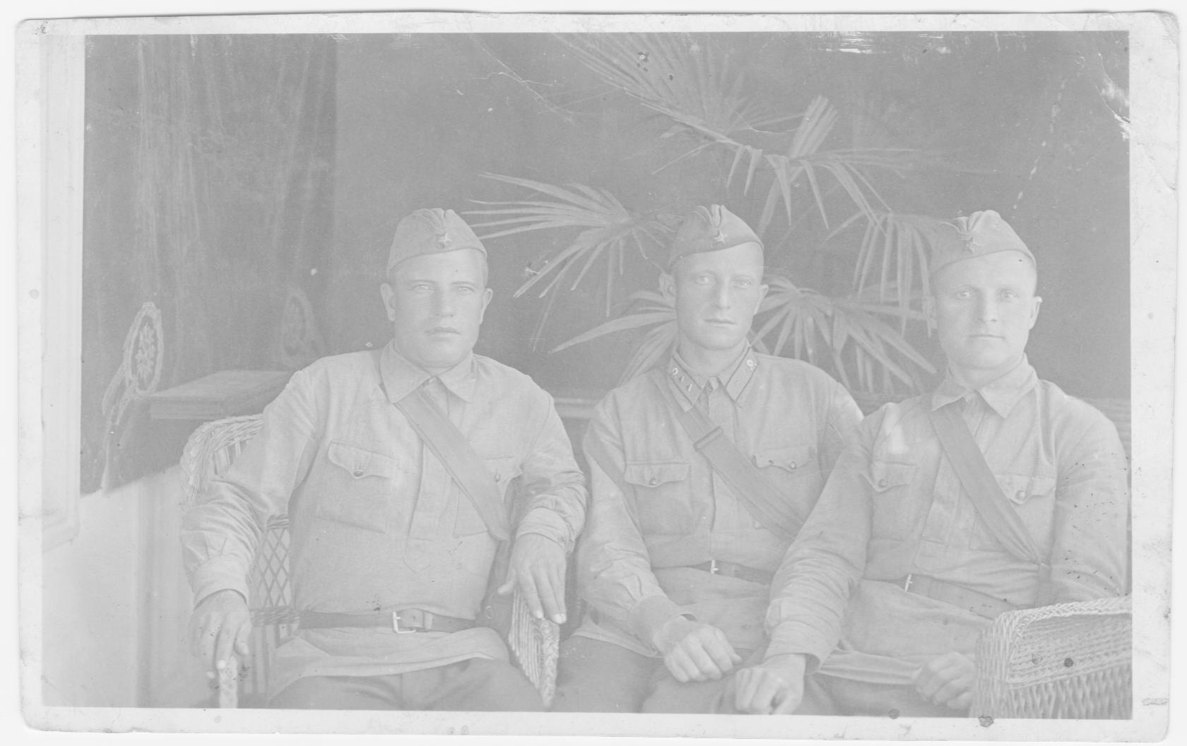 На первом фото мой дед слева. Другой сослуживец деда лейтенант Сухов Кондратий Ермилович (на втором фото он посередине), уроженец с. Р.Бундевка Руднянского р-на Сталинградской обл. рассказал, что видел деда Егора на повозке раненого в мае 1942 г. на переправе через Керченский пролив на Тамань.