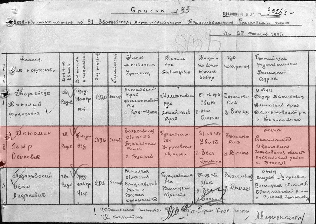 | Истомин Петр Осипович Добрый день. Прошу помочь установить данные о моем дедушке. Истомин Петр Осипович. Дата рождения - 1896 год. Место рождения - Казахская ССР, Гурьевская обл., Баксайский р-н, с. Баксай. Дата и место призыва 05.06.1942 Гурьевский ГВК, Казахская ССР, Гурьевская обл., г. Гурьев. Жена - Истомина Екатерина Ивановна