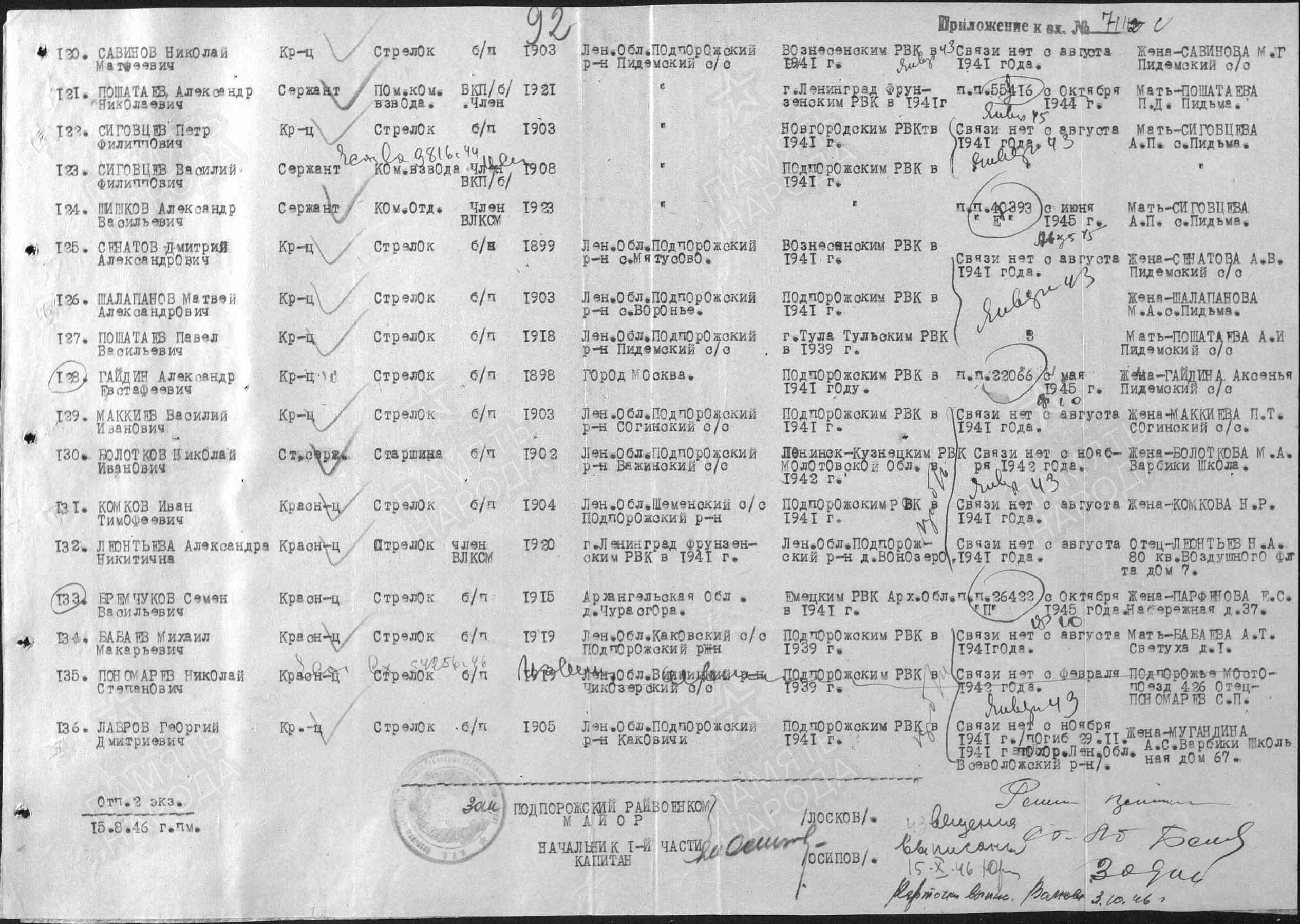 | Ищу сведения о брате моей бабушки. Пошатаев Александр Николаевич, 1921 г.р. родился в д. Пидьма, Подпорожского р-на, Лен. области.