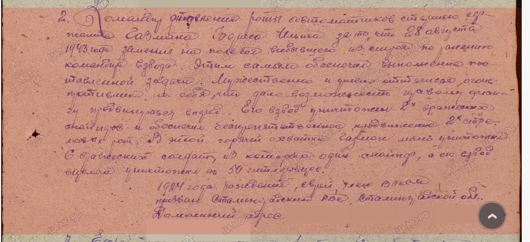 Прошу помочь в поиске информации о присвоенных государственных наградах моего дяди Газмана Бориса Ильича, 1924 г.р., мл. лейтенанта 291 сп, 634 див автоматчиков. Погиб 17.09.43 под г.Ельня. С уважением, Газман Борис моб. +7 960 353 11 36 E-mail: Boris_Gazman@mail.ru |