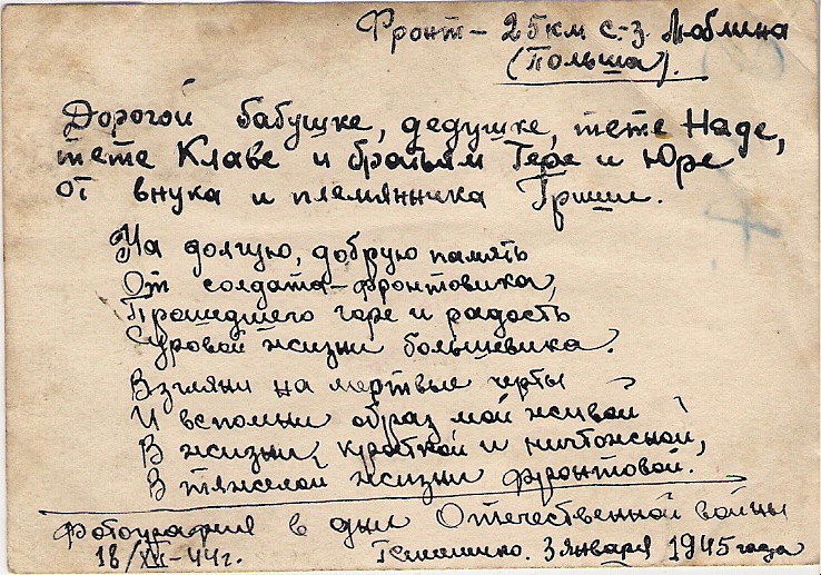 Буду благодарен за любую информацию о двоюродном брате Семененко Григории Афанасьевиче 1924 года рождения, ст. сержанте погибшем 31 января 1945 г. в Германии.
