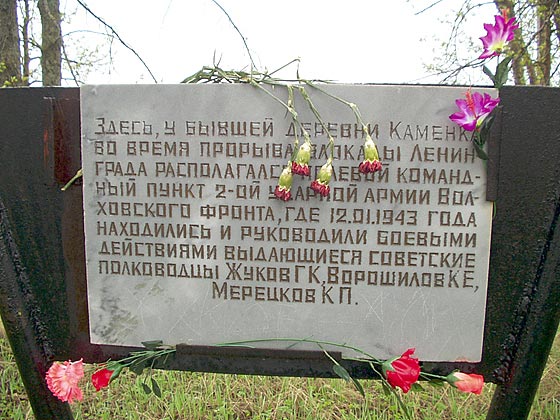 похоронен Ленинградская обл., с. Камень.Но я не могу найти даже на карте это село.Может это опечатка,может это бывшая деревня каменка?