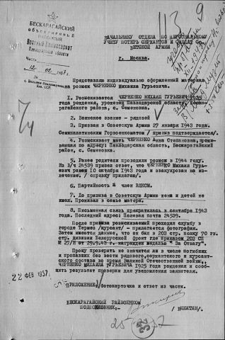 Просьба найти любые сведения о Черненко Михаиле Гурьевиче, возможно место захоронения или другие данные. Пропал без вести, есть некоторые данные.