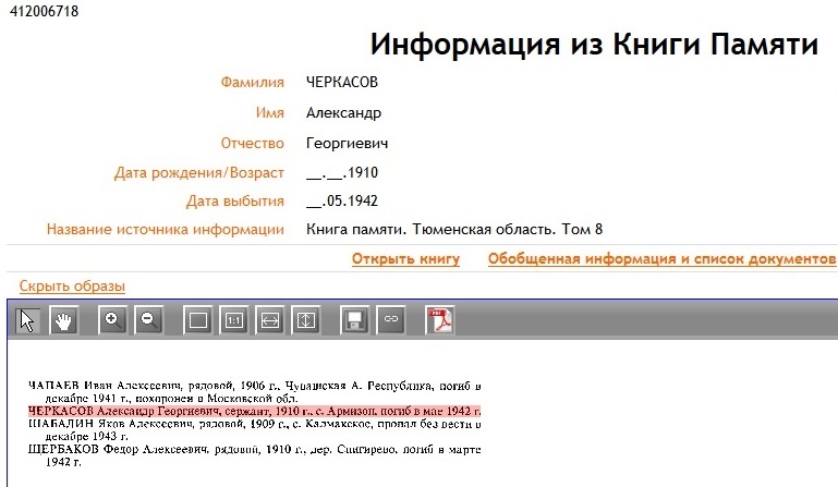 Самостоятельно мной была найдена только запись в Книге Памяти, в которой только сказано, что он погиб в мае 1942 года. |