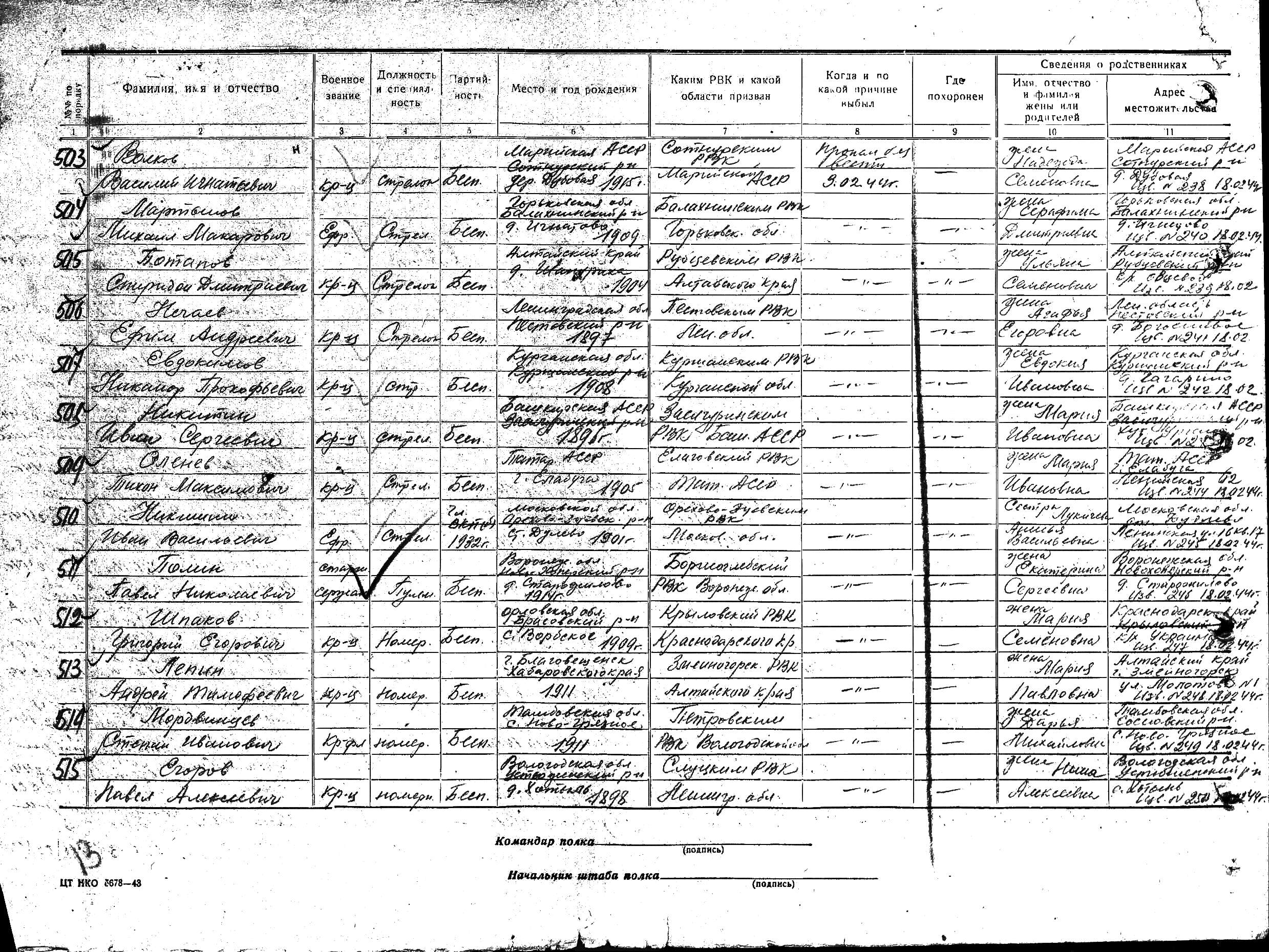 У меня возникли вопросы. 1. Где именно велись бои на конец января - начало февраля 1944 года? 2. Почему у нас такие недостоверные слухи, так сильно разнящиеся с данными в донесении? 3. Где и в каком бою участвовал мой прадед на момент его пропажи? 4. Найдены ли его останки, искались ли его родственники? 5. Захоронен ли и где, если его нашли? 6. Как отследить его боевой путь, или найти документ, в котором бы значился факт пребывания его в штрафбате? 7. Как увековечить память о нём, занести его данные в список погибших однополчан? |