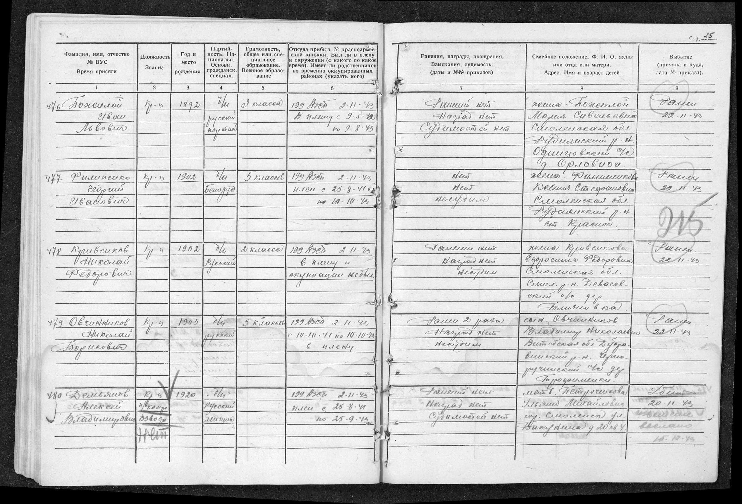 Дата выбытия	22.11.1943