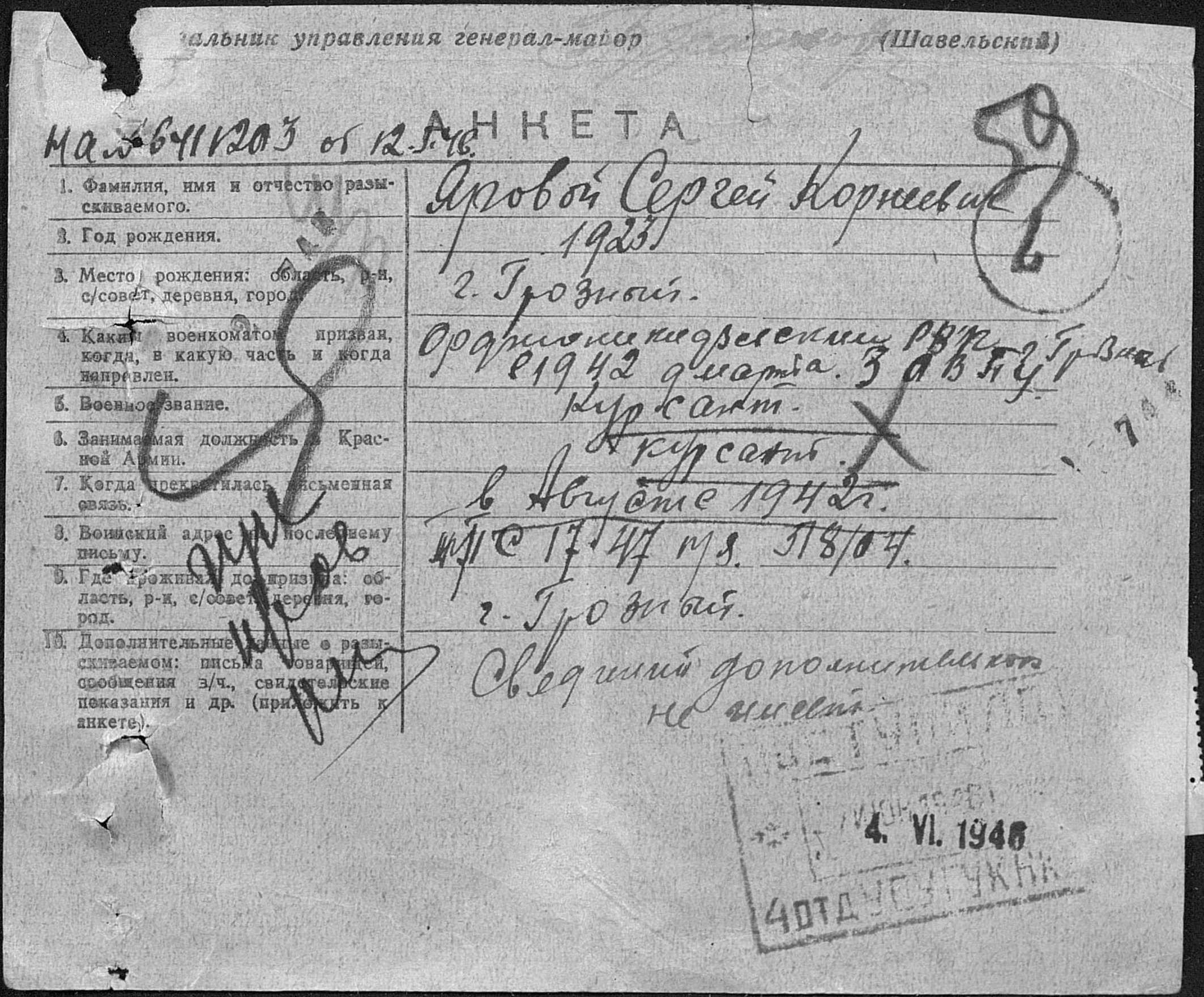 Разыскиваю информацию о Яровом Сергее Корнеевиче 1923г.р. Уроженец г.Грозного Курсант Призван на фронт в 1942г. Орджоникидзевским РВК 3 АВПУ. п/о 518/05 (данные с сайта мемориал) Интересует расшифровка АВПУ и где находился П/о 518/05 в июне-августе 1942 года (примерная дата последнего письма) |