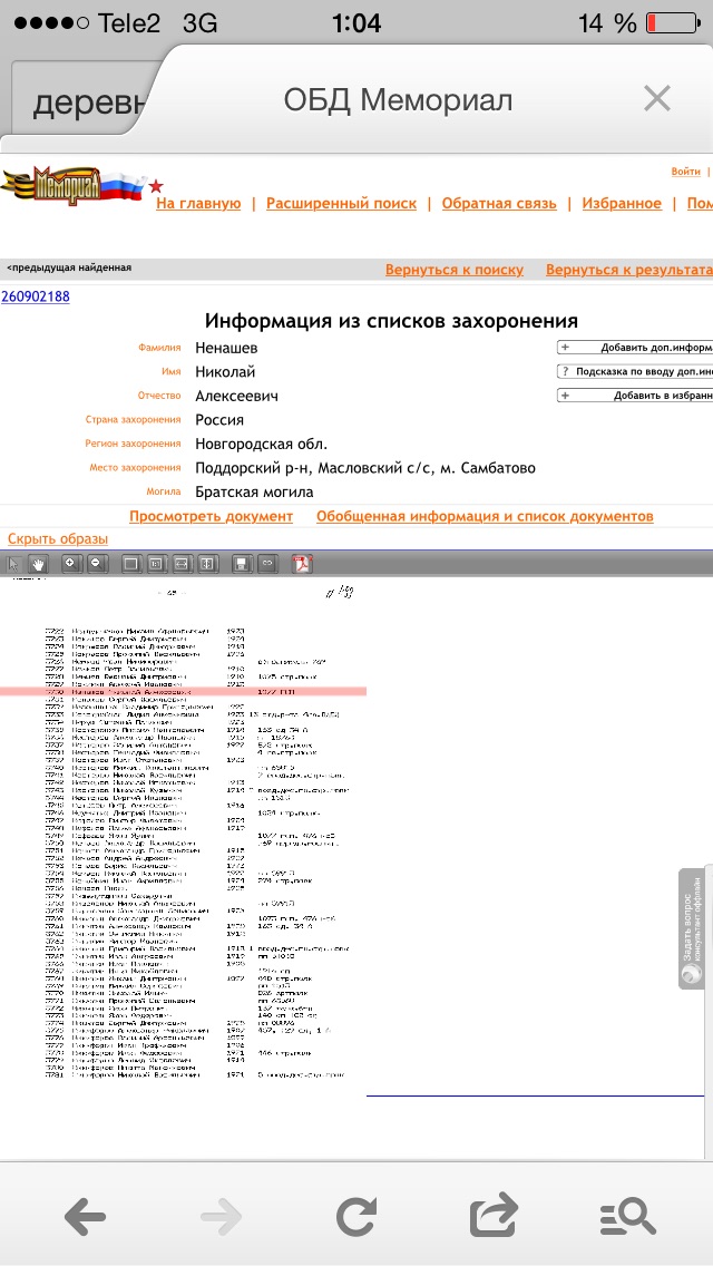 здравствуйте, как можно уточнить, правда ли мой прадед Ненашев Николай Алексеевич похоронен в м. Самбатово. Спасибо, скрины фото в приложении
