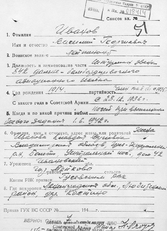Информация по вашему родственнику перенесена в тему 842 бомб.авиаполк