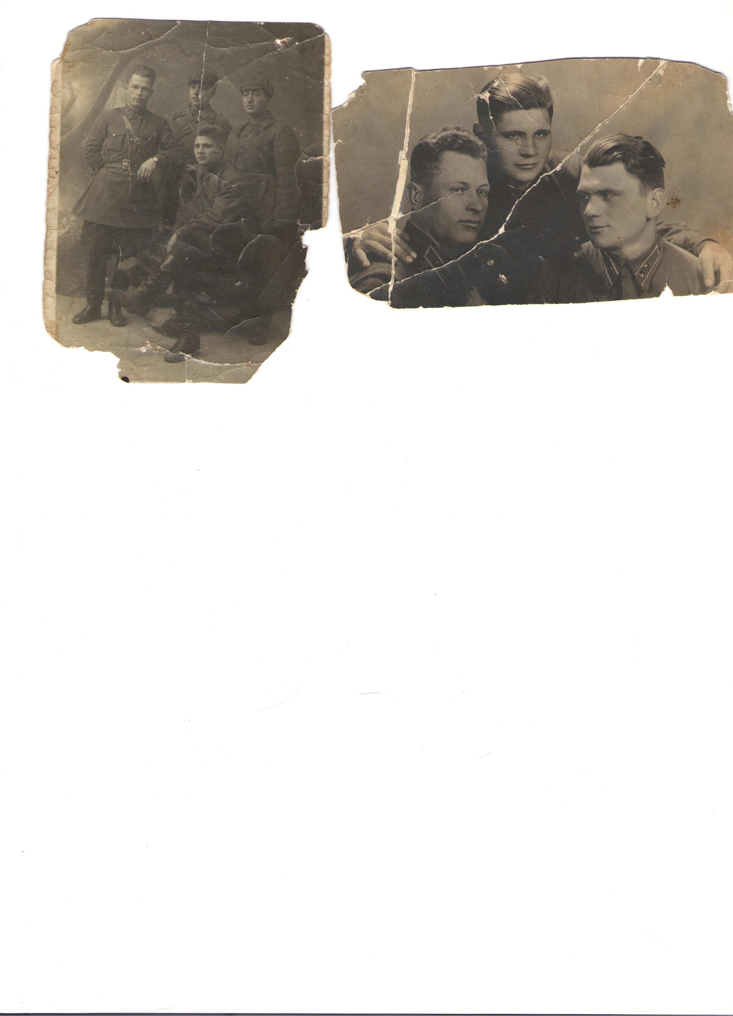 Жена Соколовская Надежда Романовна. Данные из выписки из приказа № 0173/пр от 28.02.1942 г. PS из рассказа своей прабабушки я знаю, что в ночь с 21 на 22 июня 41 г. они виделись последний раз. На фотографиях мой прадедушка-крайний слева.Пожалуйста, если обнаружатся сведения помимо места дислокации стр роты 82 33 стр дивизии, указанных выше, сообщите их тоже. Благодарю! |