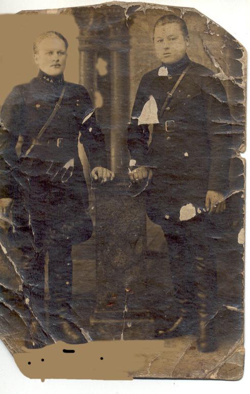 | Добрый день! Я ищу информацию о своём дедушке - Леонтьев Григорий Иванович. Родился в Вологодской области, Кирилловский р-н, с. Андреевское. Дату рождения моя мама (его дочь) точно не помнит.Проживал в д. Коварзино. Ещё в моё детство бабушка (его жена) Леонтьева Елизавета Кузьминична рассказывала, что он пропал без вести в начале войны. Призван был ещё до начала ВОВ. Моя мама родилась 25 мая 1941 и по рассказам бабушки его дома уже не было. На поисковых сайтах есть информация о пропавшем без вести с похожими данными - Леонтьев Георгий Иванович. Дедушка это или нет, я не могу понять, хотя с именем может и напутали. Хотелось бы знать в какой период, в каком регионе и в каких боях он мог пропасть без вести. Может есть шанс найти хоть какую-то информацию. На приложенном фото дедушка слева, тот что меньше ростом. Это единственная фотография. Буду очень благодарна за любую информацию.