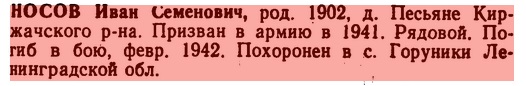 1. красноармеец Носов Иван Семёнович 1902 14.02.1942 д.Назарьино