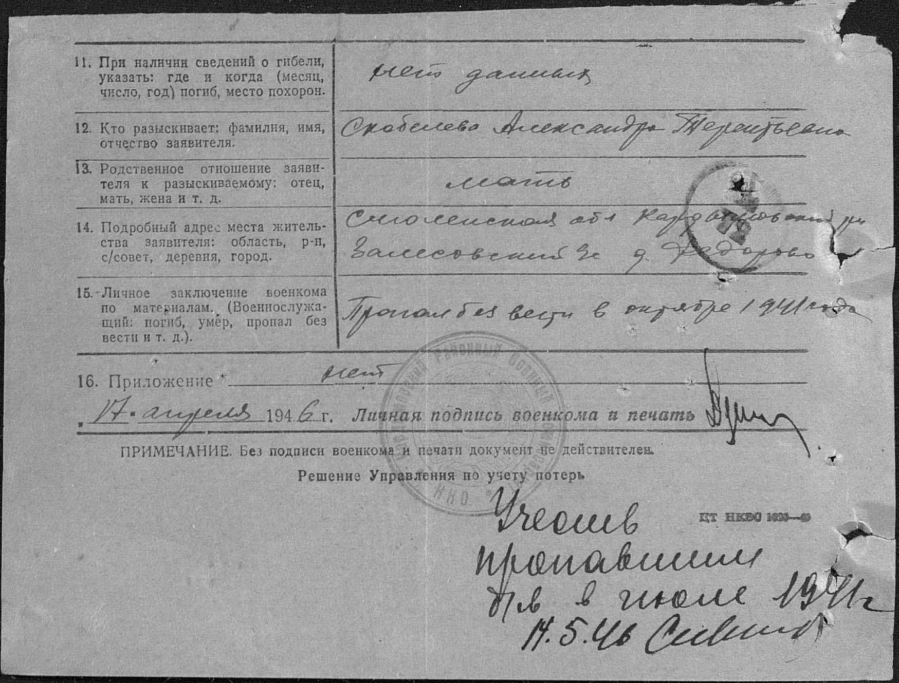 Место проживания до призыва-Смоленская обл.Кардымовскый р-он.Залесовскийс.сд.Федорово