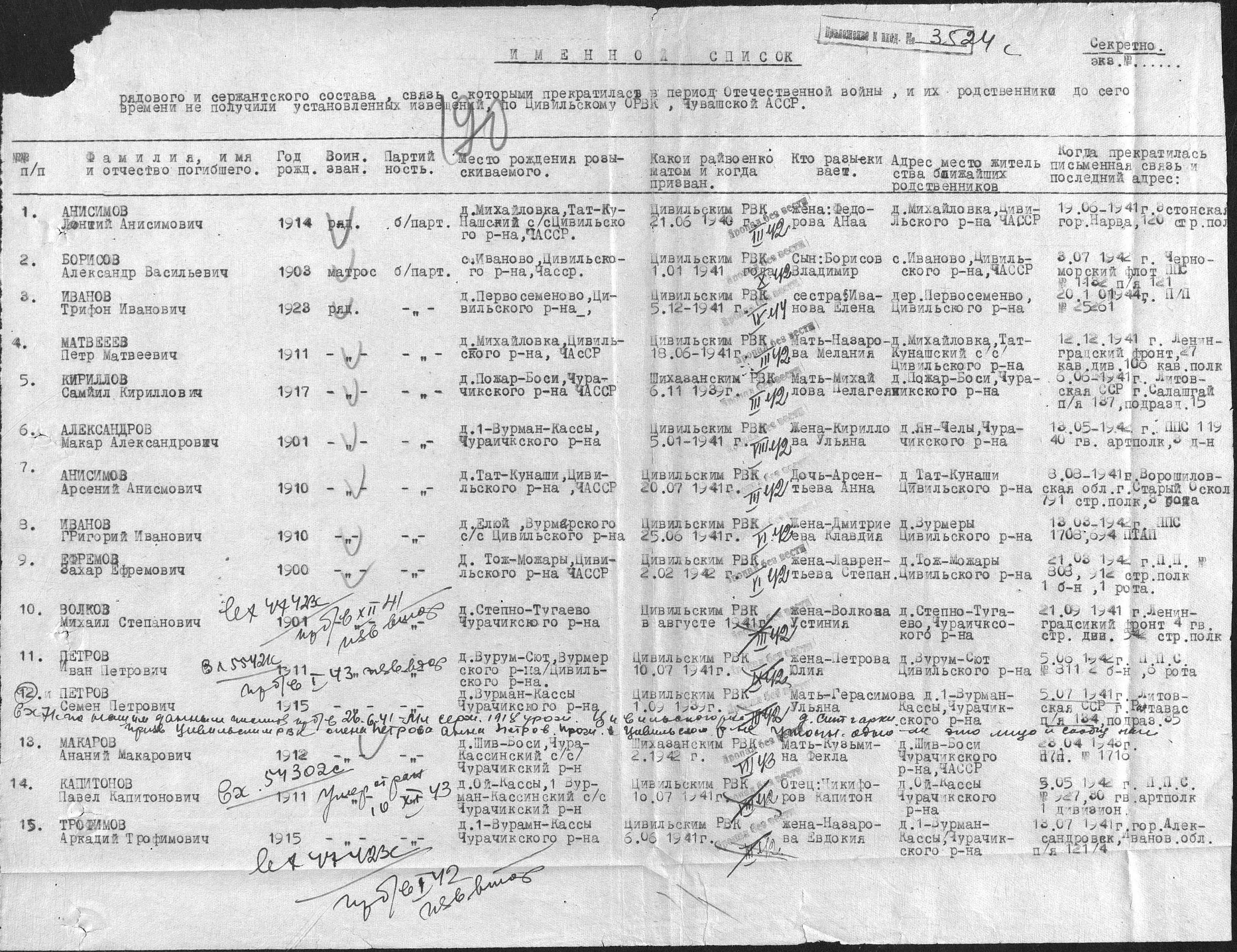 Жена Ульяна Красноармейский район д.Вурман Кузы.Так перевели с немецкого. Ваш боец родом из д. Вурман-Кассы Чураичского р-на. Умер 6.04.1945 в шталаге 2Б Чуть-чуть до Победы и освобождения не дожил. Информация о шталаге есть на нашем форуме. Читайте.