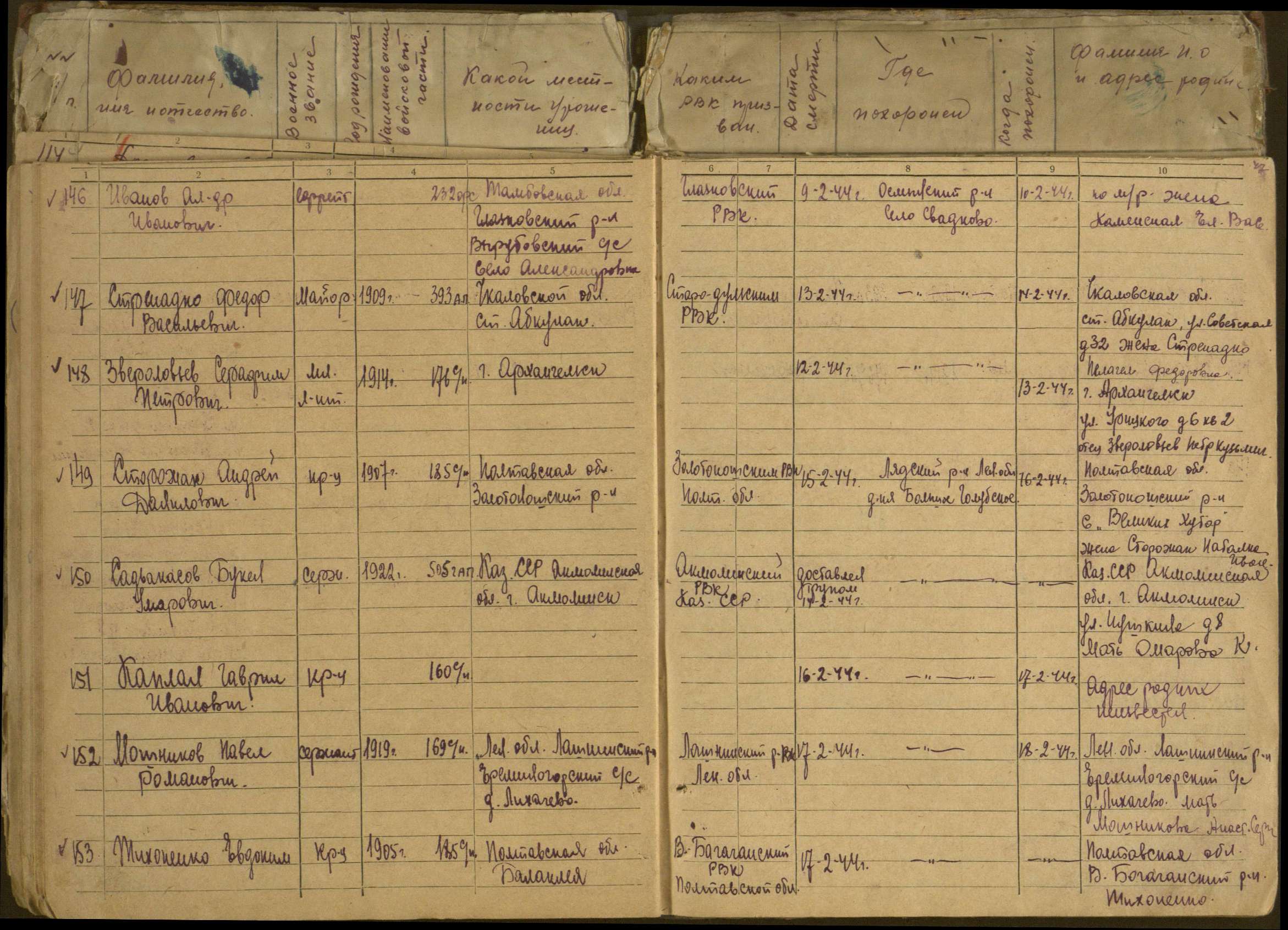 Дата выбытия 13.02.1944
