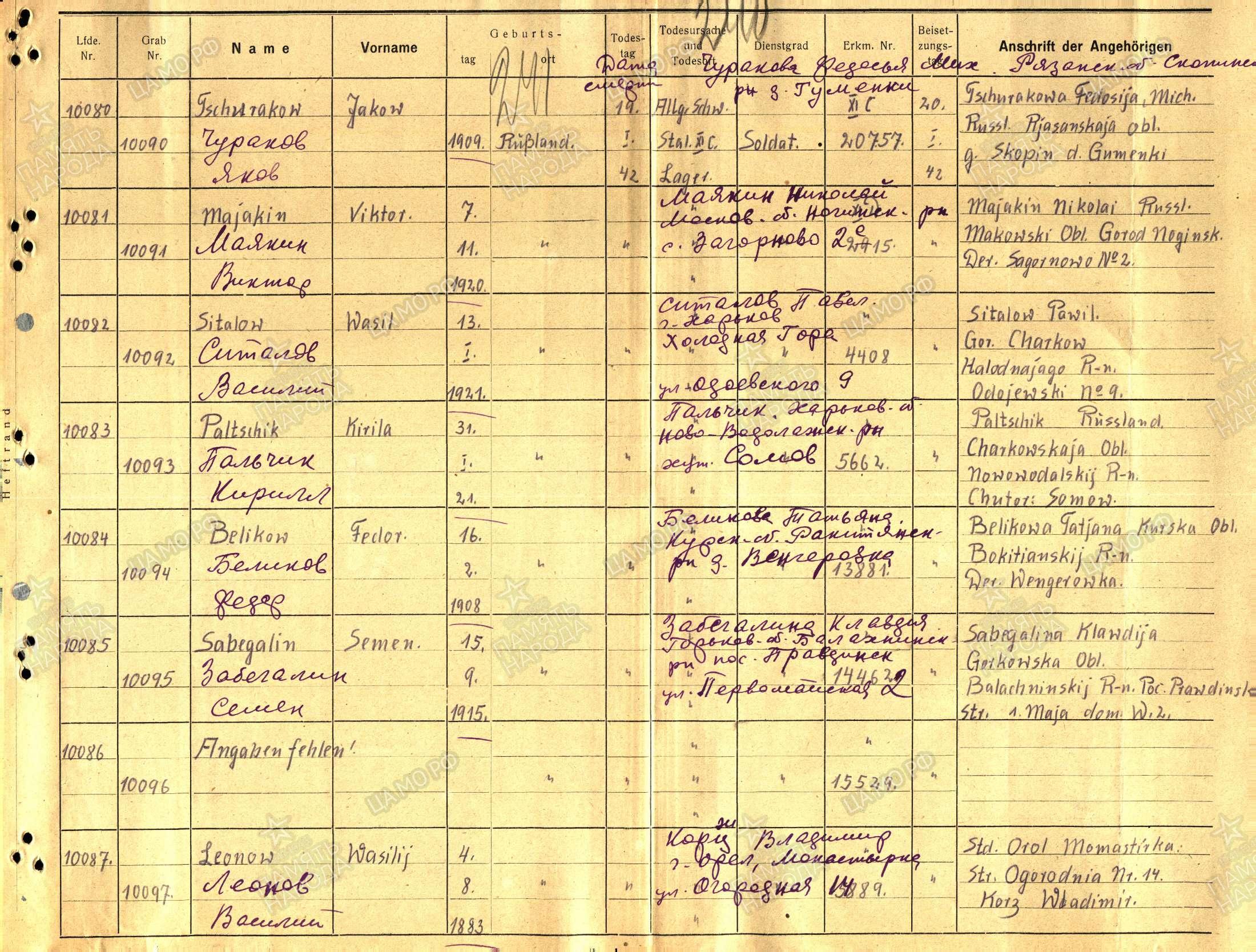 Добрый день! Помогите установить место службы, пленения и ГЛАВНОЕ захоронения моего прадеда Забегалина Семена. Есть информация о его гибели 19.01.1942 в концлагере "Шталаг XI C" на сайте "Мемориал" и больше ничего пока не могу найти.
