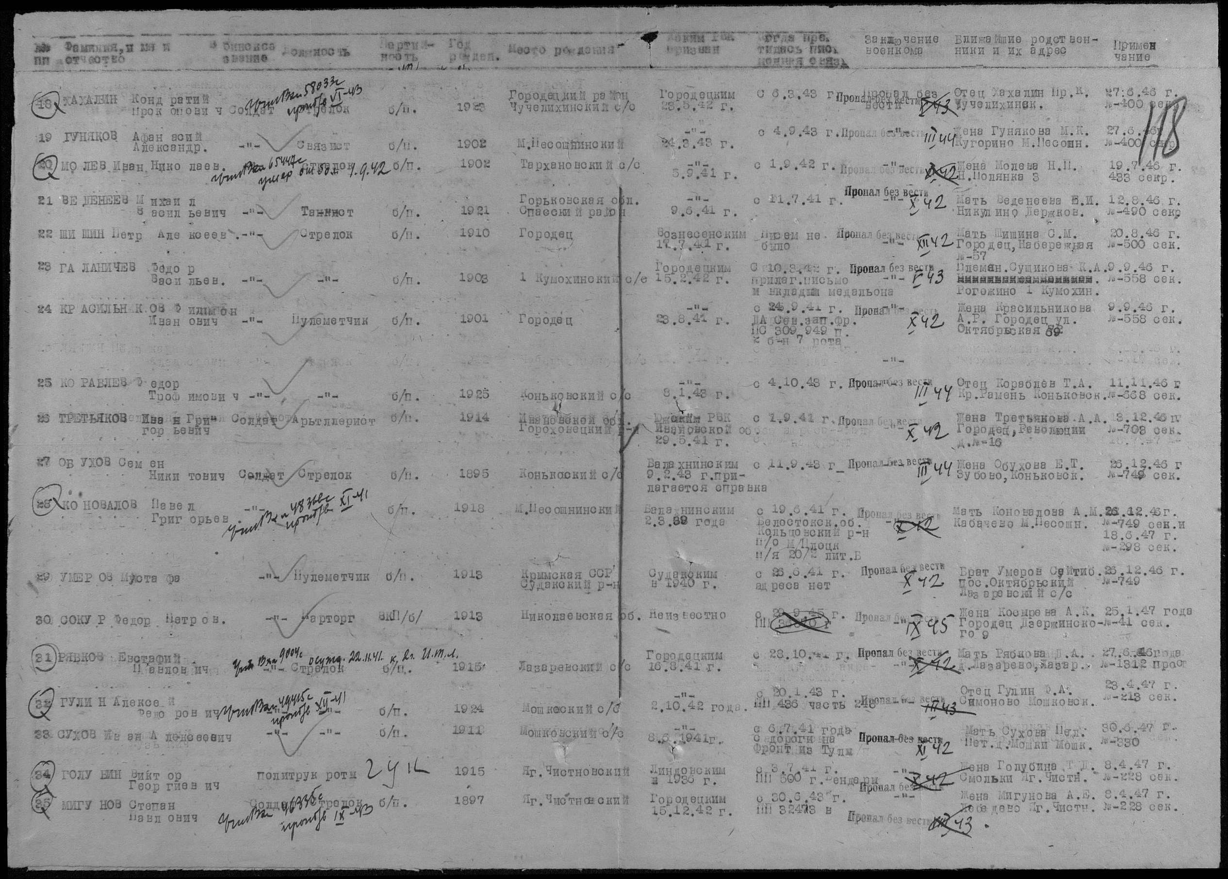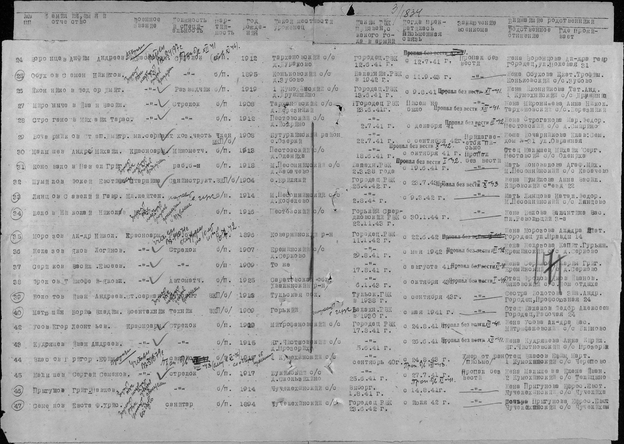 Год рождения 1895, место Горьковская область, Городецкий р-н, Коньковский с/с, д. Зубово. Призыв - 1942, Балахнинский РВК, Горьковская обл., Балахнинский р-н. Жена - Екатерина Трофимовна