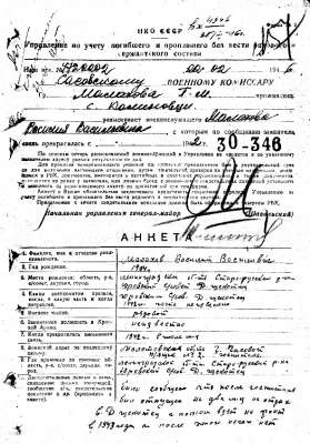 1904 г.р. урож. д. Щекотец Новгородской обл., дата и место призыва: 16.07.1941г. Старорусский РВК, Новгородская обл., Старорусский р-н, пропал без вести в июле 1943г., лежал в госпитале на реке Чусовая примерно в 1942г. |