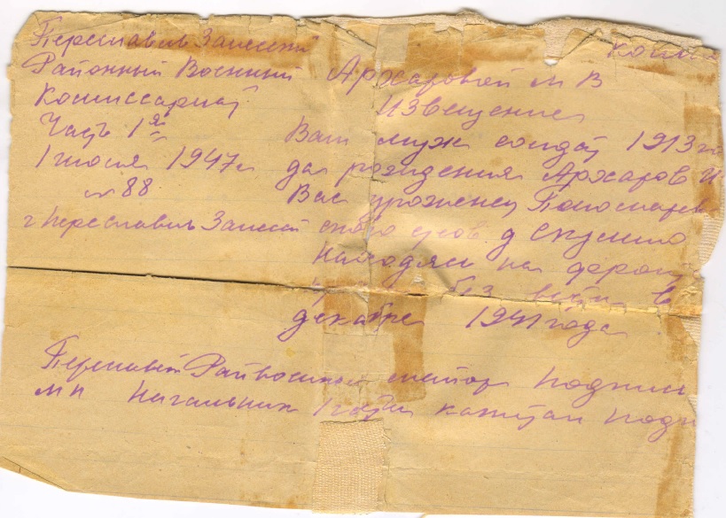 Да, в военкомат собиралась написать обязательно, хотя у меня нет уверенности, что есть какие-либо данные. Извещение пришло аж в 1947 и крайне скудное.