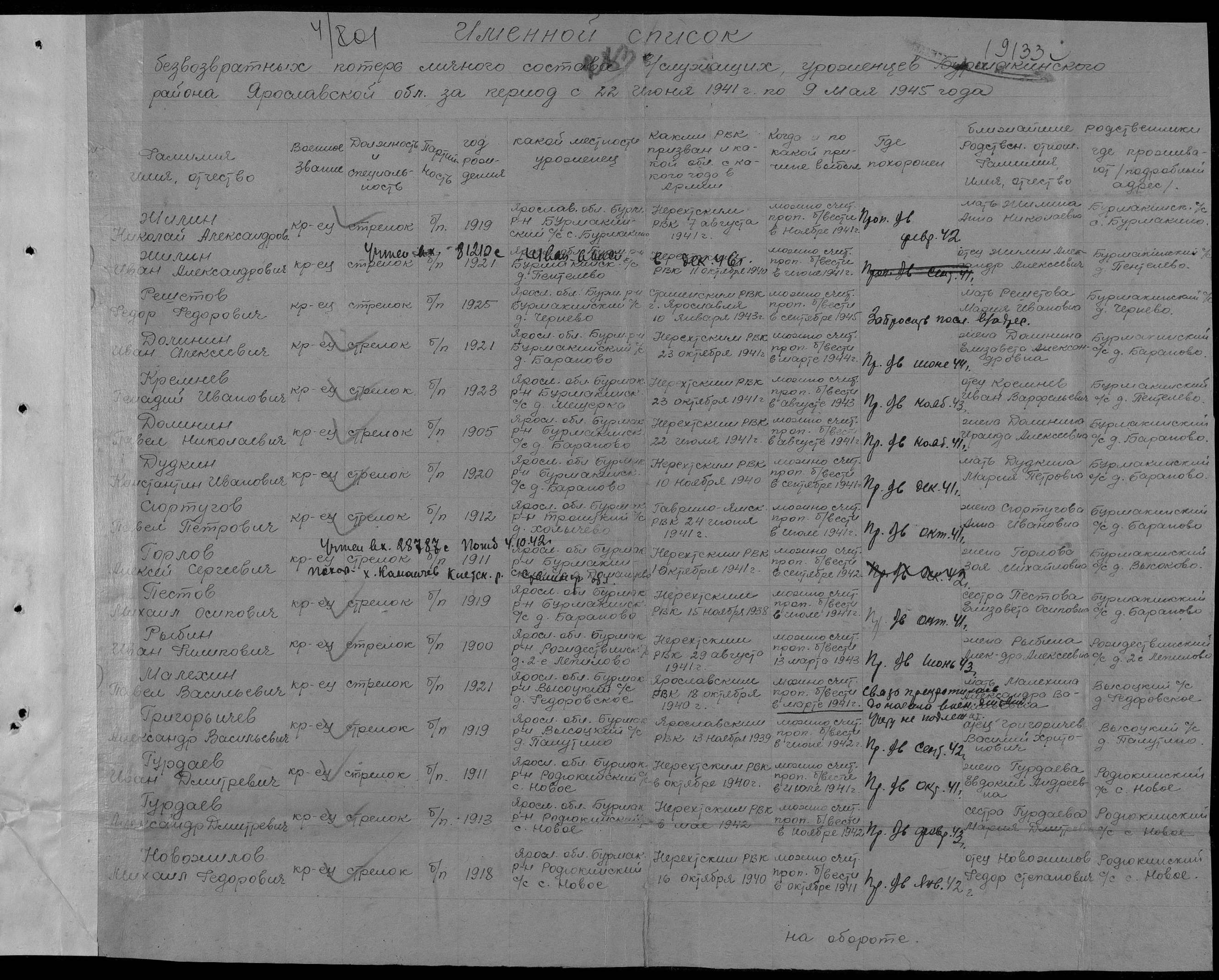 | Прошу помощи найти подробные сведения о пропавшем без вести в ВОВ моем деде Долинине Иване Алексеевиче,1921 г.р. уроженце Ярославской обл.,Нерехтский р-он,Бурмакинский с/с,д.Бараново.Был призван 23.10.1941 года Нерехтским РВК, Ярославская обл.,Нерехтский р-он |