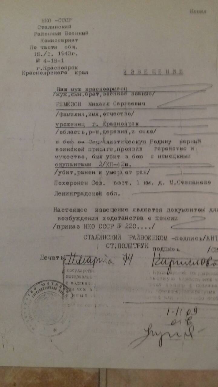 | мой прадед, Ремезов ( но в некоторых источниках находила РемИзов) Михаил Сергеевич, красноармеец, уроженец Красноярска, погиб 2.07.1942 года.