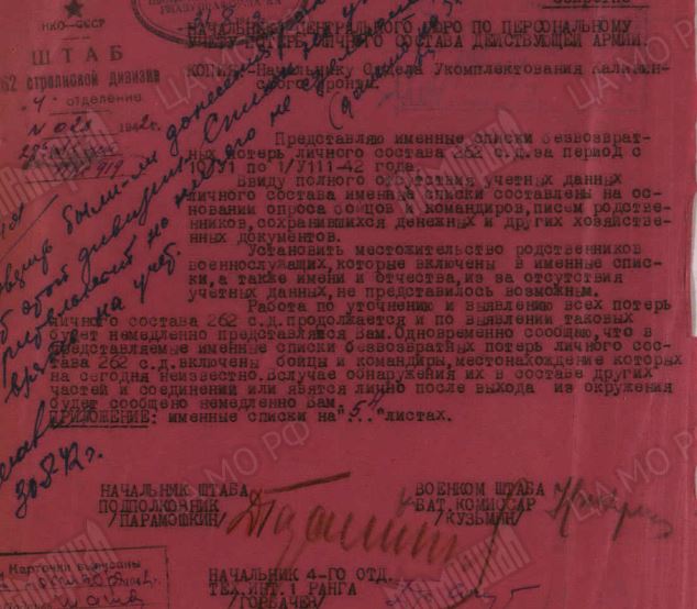 Это донесение о потерях 262 сд