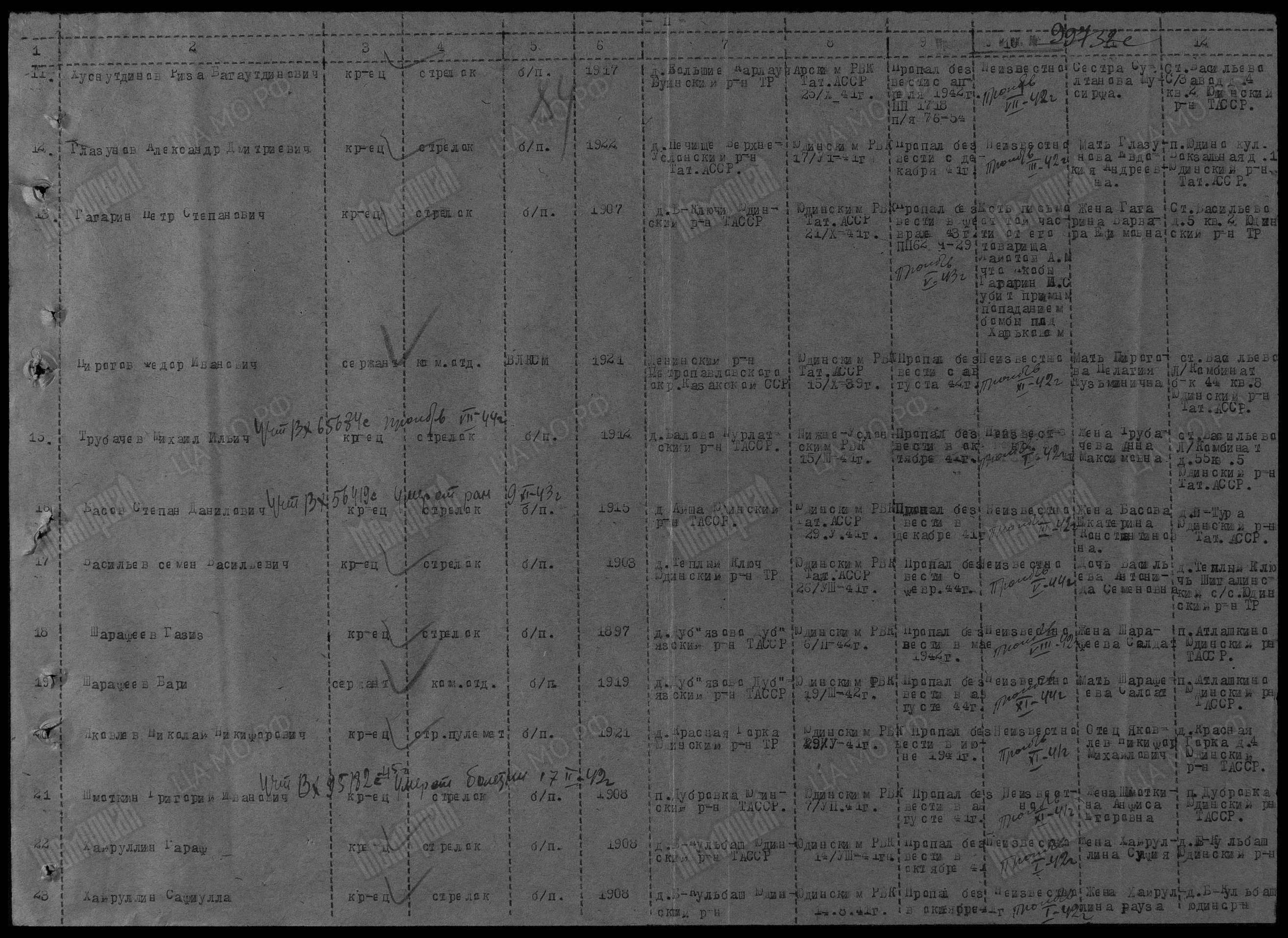| Мой прадедушка всегда считался пропавшим безвести. Во вложенном файле есть отсканированная копия документа от 1946 года, в котором написано, что он пропал безвести в 1941 году (последняя строчка)