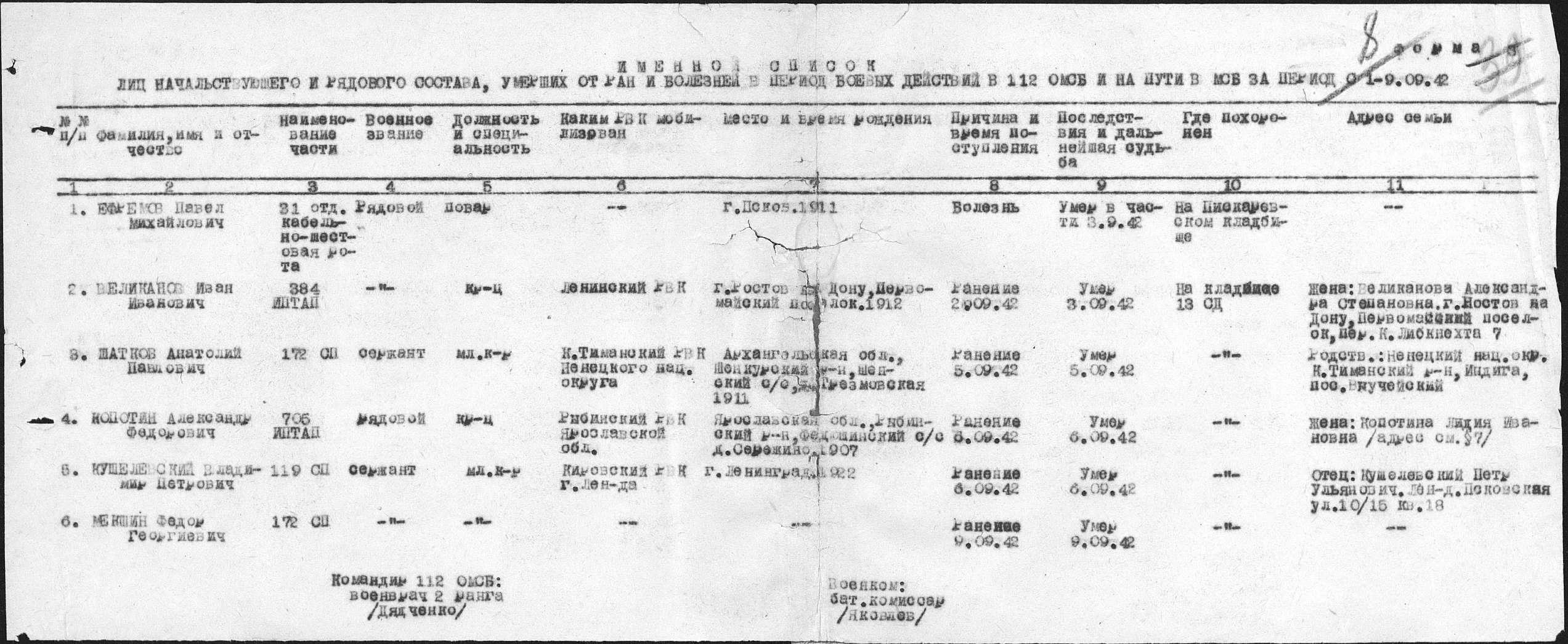 | Ищу место захоронения Дедушки - Копотин Александр Федорович.1907 г.р.По записям из базы ОБД "Мемориал",известно только о том .Что он захоронен на кладбище 13 СД , 07.09.1942. Проверив все данные об известных захоронениях 13 СД,которые доступы в интернете.Так и не нашел ,какой либо информации о захоронении Дедушки.Есть предположительная информация,что это кладбище находится в Лужском р-не,Лен.обл.Но где точно?Так и не могу найти.Помогите найти,сам уже не знаю...где и как? |