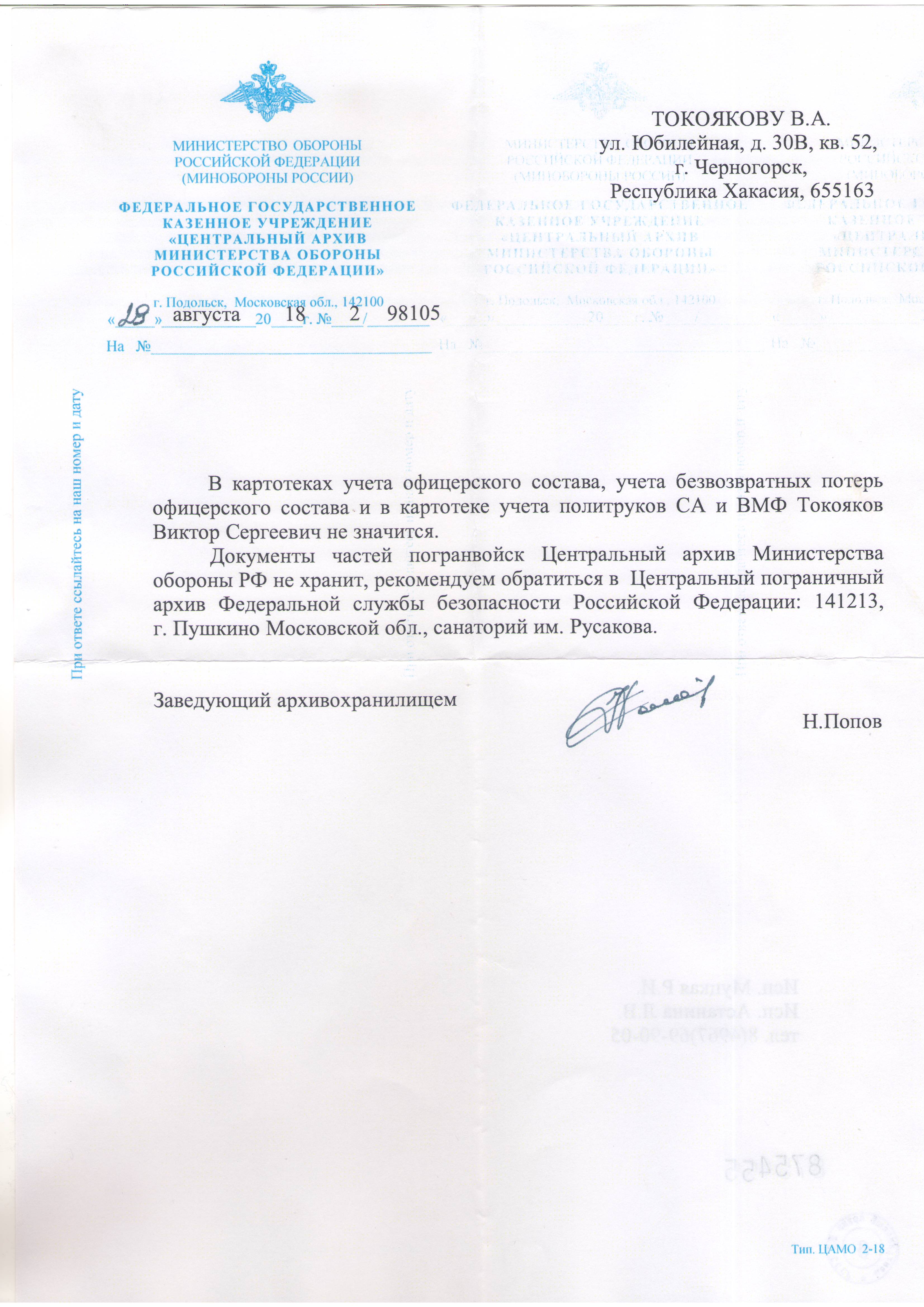 Ищу брата моего деда, Токоякова Ондрея Сергеевича 1914г.р., Токоякова Виктора Сергеевича 1919г.р. в ул.Печень Таштыпского района ныне Аскизского района Хакасской Автономной Области. Призван Таштыпским РВК. Служил на Дальнем Востоке, после службы должен был вернутся домой, но началась Великая Отечественная Война их батальон срочно забросили на Запад. Воевал в Крыму Керченском полуострове. В составе пограничного гарнизона , со слов командира полка во время захвата Керченского полуострова фашистами, батальонный комиссар Токояков Виктор Сергеевич с группой бойцов и партизан укрылись в каменоломнях, после отказа сдаться в плен фашисты пустили отравляющие газы. Немцы захватили Керченский полуостров в мае 1942 года. Пытаясь выкурить военных из укрытия, фашисты закачивали в каменоломни дым и отравляющие газы. Говорят, что из самых глубоких штреков до сих пор не выветривался запах газа и гари. В середине октября 1942 года большая часть защитников подземной крепости погибла, но оставшиеся в живых бойцы продолжали оказывать сопротивление врагу. Выстрелы прекратились 31 октября 1942 года, последние красноармейцы были взяты в плен. От фашистской оккупации Керчь и её окрестности были освобождены лишь в апреле 1944-го. Пропал без вести… |