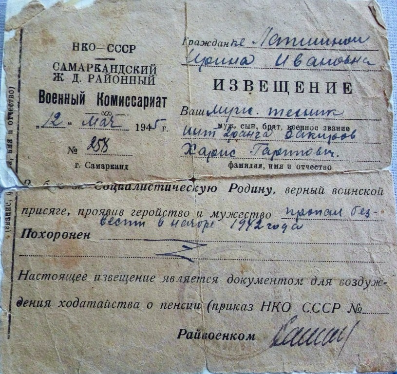 Здравствуйте,Olga Pankova!Спасибо за Ваше участие, но я считаю, что информация, которую Вы почерпнули из Мемориала,касается полного однофамильца моего деда.Я тоже видел в базе эти документы.Но еще я нашел вот эти архивные записи,которые больше соответствуют личным данным деда:https://www.obd-memorial.ru/html/info.htm?id=74654229&p=29