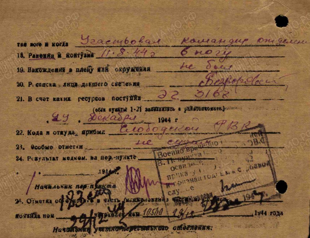 Место службы: 953 сп 257 СД, 4-й УкрФронт