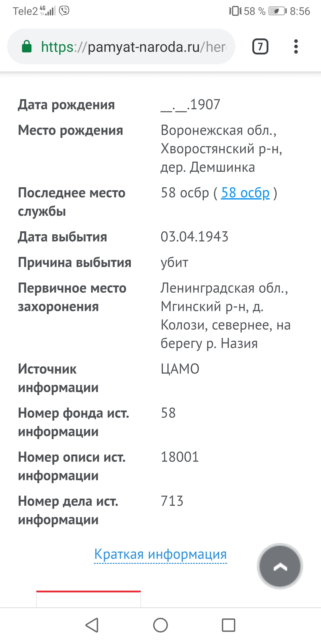 Информация по вашему родственнику перенесена в тему 58 осбр