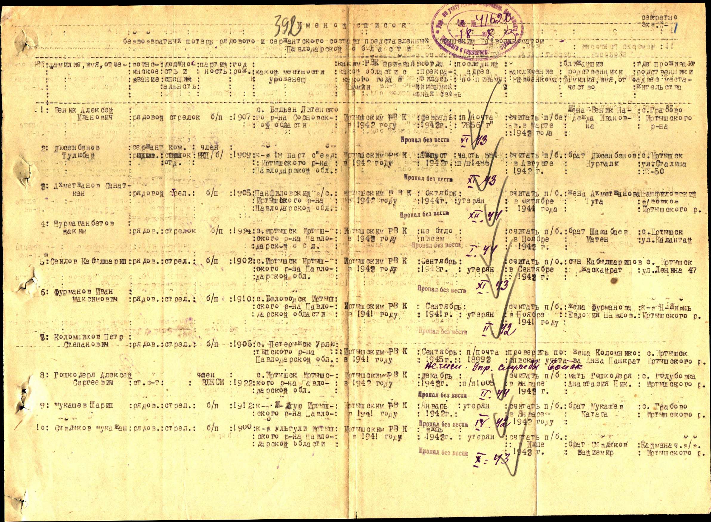 Дата и место призыва__.08.1941 Иртышский РВК, Казахская ССР, Павлодарская обл., Иртышский р-н