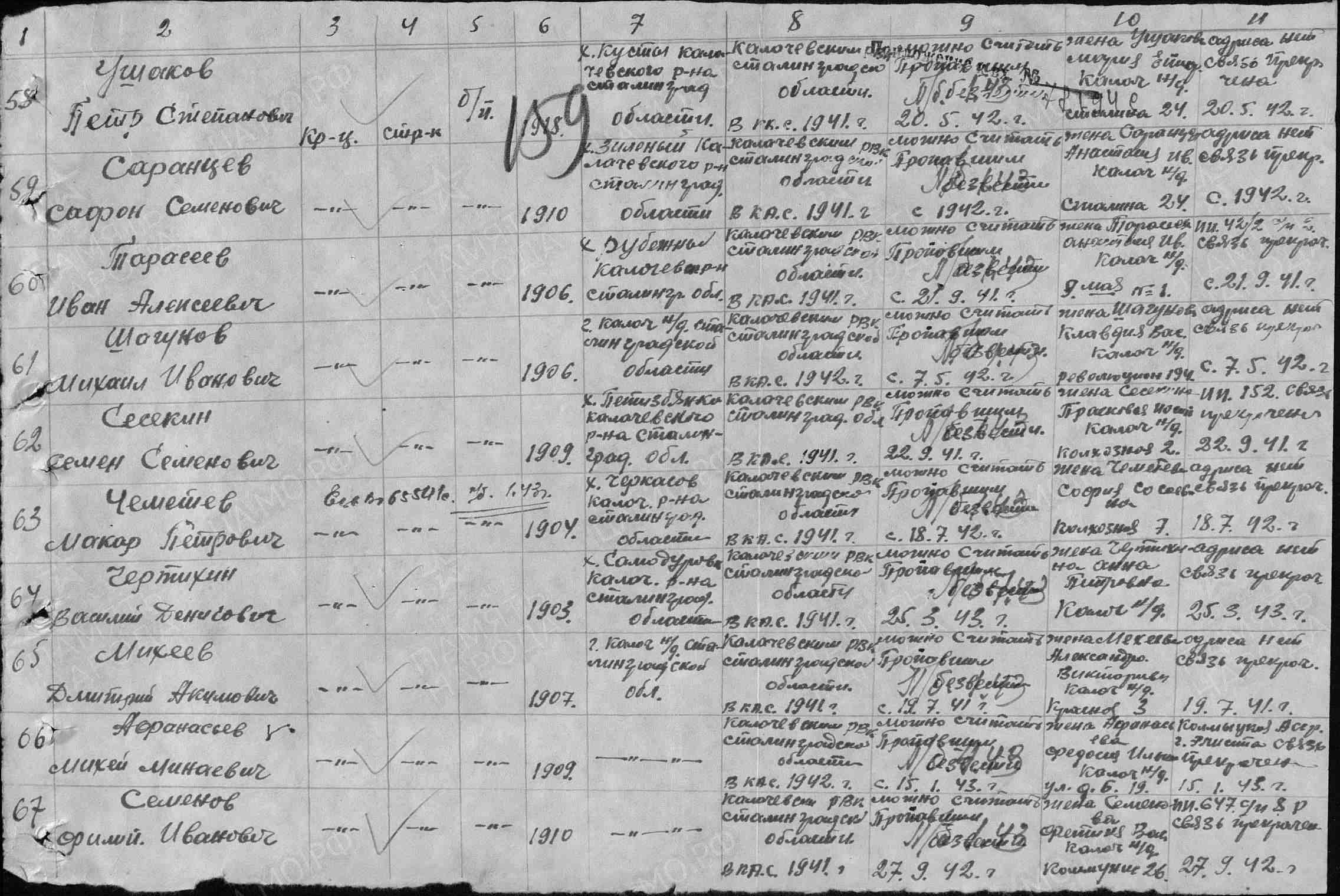 Дата и место призыва __.__.1941 Калачевский РВК, Сталинградская обл., Калачевский р-н
