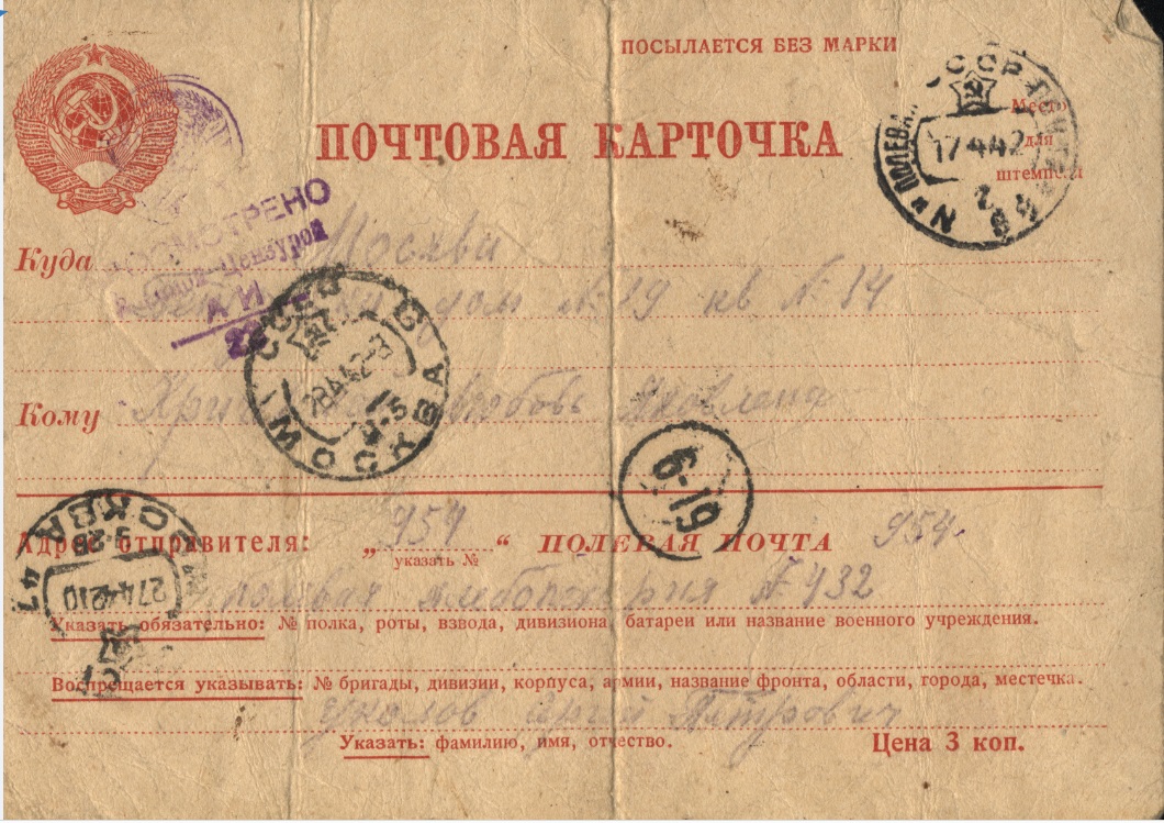 Хорошо, что вы приложили почтовую карточку. Работники военкомата в послевоенном донесении все переврали.