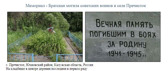Первичное место захоронения Смоленская обл., Юхновский р-н, с. Пречистое, юго-восточнее, 1500 м, лес