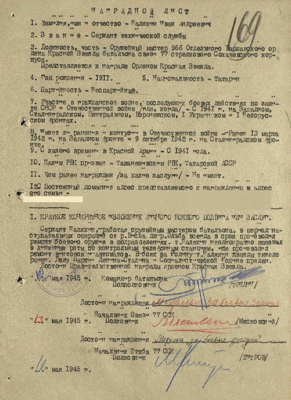 Родился в 1911 году. На войну призывался из Татарской АССР. После войны проживал в Казахстане, Кокчетавская обл, Рузаевский район, с.Рузавека |