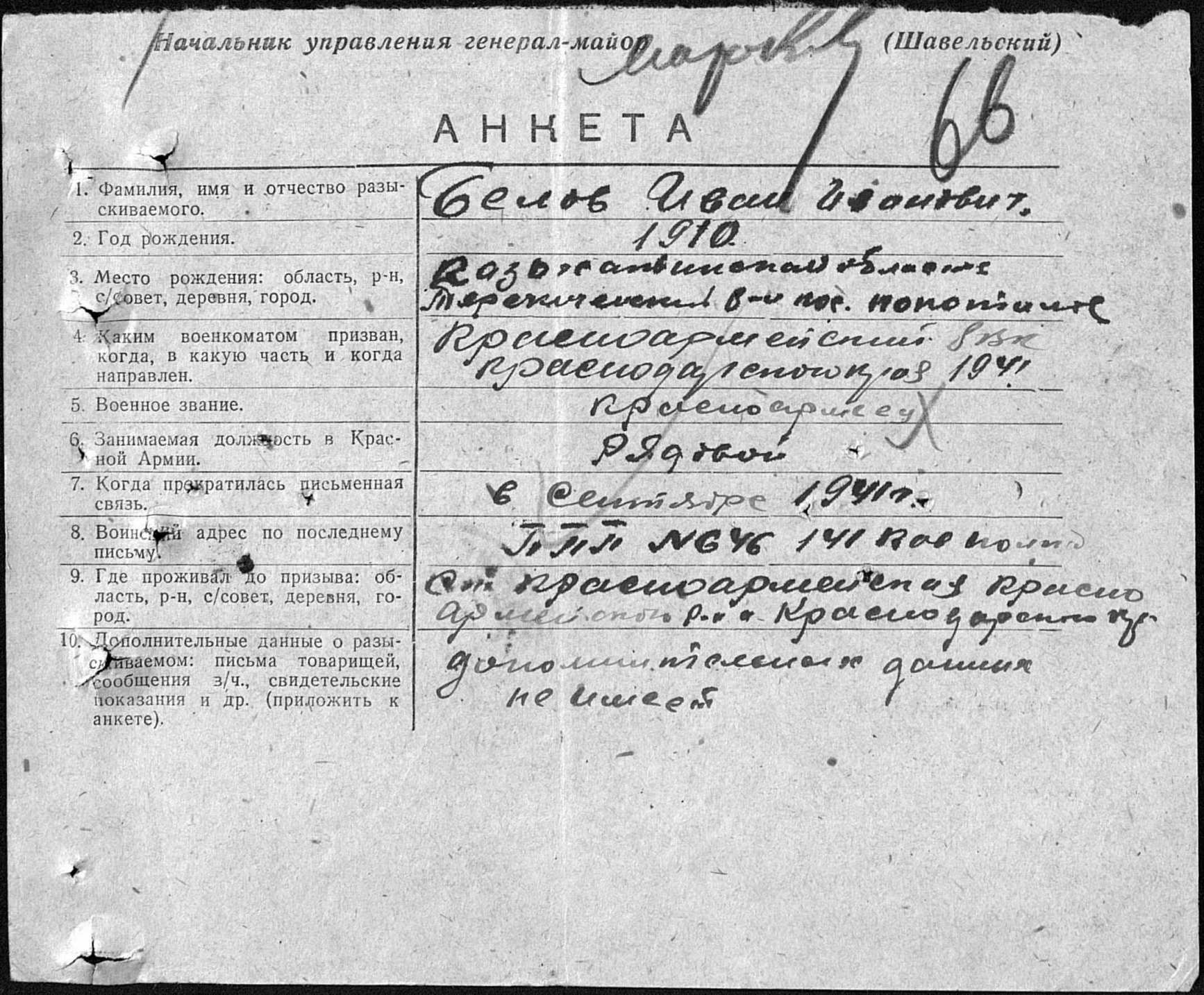 БЕЛОВ ИВАН ИВАНОВИЧ, 1910 года рождения,