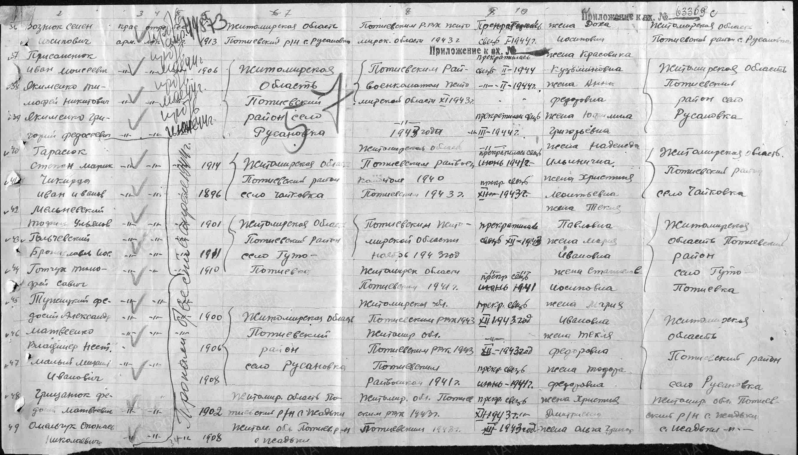 | Дата рождения __.__.1900 Место рождения Украинская ССР, Житомирская обл., Потиевский р-н, с. Русановка Дата и место призыва __.__.1943 Потиевский РВК, Украинская ССР, Житомирская обл., Потиевский р-нДата выбытия __.04.1944 Причина выбытия пропал без вести Источник информации ЦАМО Фонд ист. информации 58 Опись ист. информации 18004 Дело ист. информации 289 |