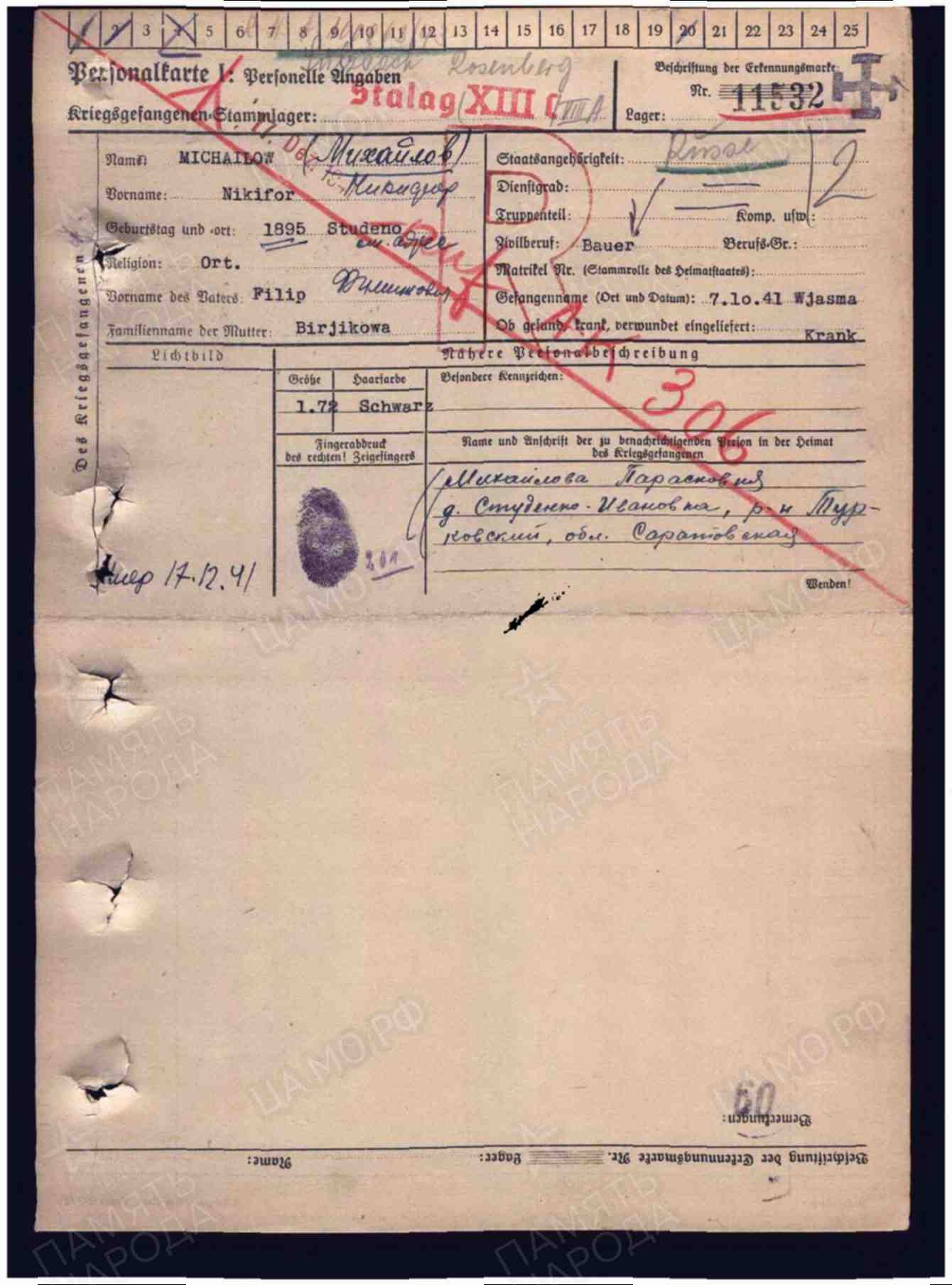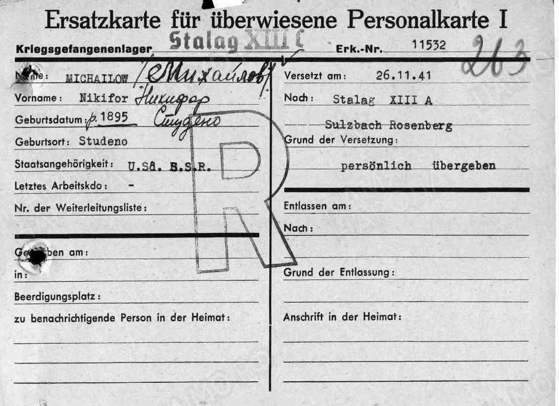 Пожалуйста,помогите по документу определить захоронение военнопленного Михайлова Никифора Филипповича |