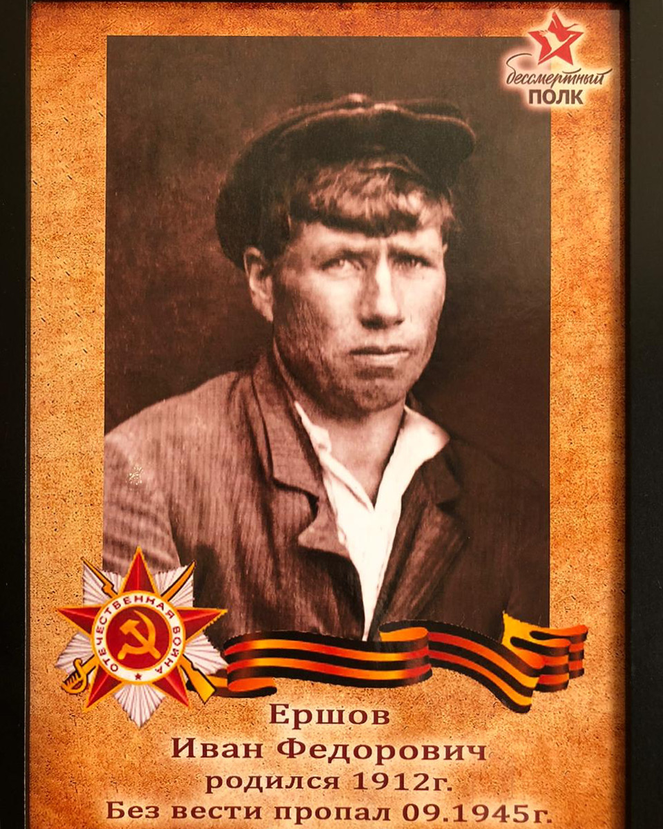 | Прошу помочь в поиске моего прадедушки Ершова Ивана Фёдоровича. Год рождения: 1912, место рождения: г. Новосибирск. Дата и место призыва: 05.08.1942 г., Бодайбинский РВК, Иркутская область, Бодайбинский район. Жена: Цыбкова Анна Дмитриевна. Удостоверение на льготу семьям военнослужащих было отправлено с полевой почты 24799 01.01.1944 года.