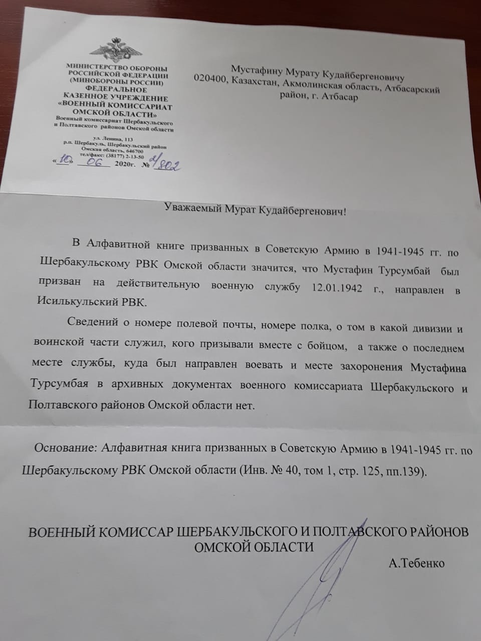 Пришёл ответ с Шербакульского рвк. Никаких данных нет. Как дальше быть? Прилагаю ответ письма |
