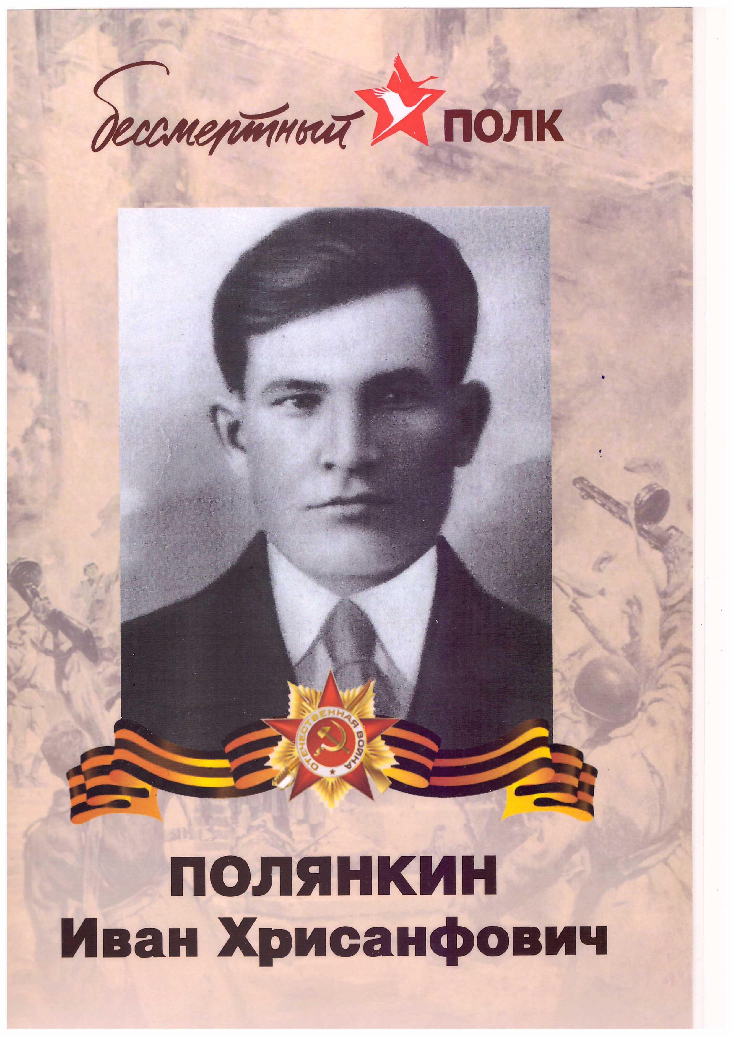 | Помогите найти место гибели (захоронения) деда Полянкина Ивана Хрисанфовича ( в записи военкомата Керсанович) 1905 года рождения . Призван по мобилизации Балашовским ГВК Саратовской области 28.06.1941 года, ВУС-2, рядовой состав, № команды 747, домашний адрес: г. Балашов Советская 91. По сведениям местного краеведческого музея в мае-июне 1941 года происходило формирование в Балашове 167 стрелковой дивизии входящей в состав 63 стрелкового корпуса. Связь с семьей прекратилась в сентябре 1941 года. В декабре 1941 года получено извещение о том ,что он числиться пропавшим без вести. 10 октября 1946 г. Балашовский Районный Военный Комиссариат (по запросу семьи) составил список на лиц, без вести пропавших, связь с которыми прекратилась в период Великой Отечественной войны и направил начальнику управления по учету погибшего и пропавшего без вести рядового и сержантского состава Красной Армии г.Москва