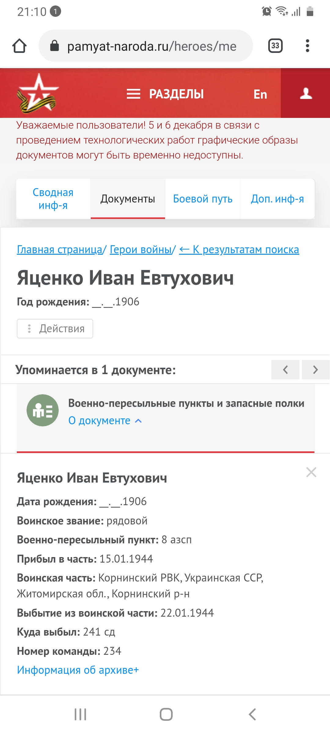 В моем первом письме опечатка... село Веприк. Не заметила. Ещё на одном сайте нашла информацию, не знаю, может она о прадеде. На всякий случай прикреплю тоже. |