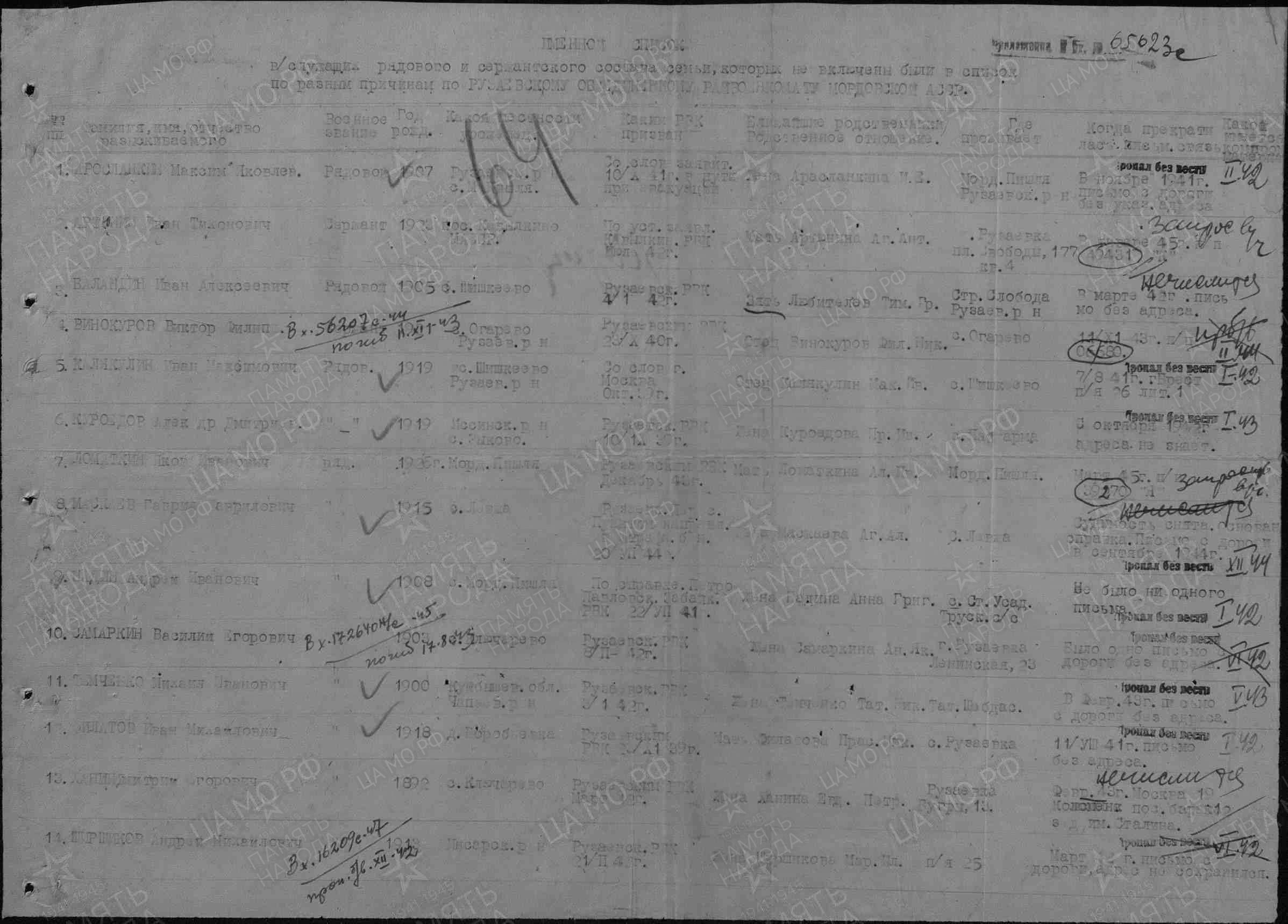 Больше никакой информации нет. С фронта не было писем.Хотелось бы узнать, какой его был боеовй путь, в какой части служил, на каой фронте. Нет ни одной фотографии прадедушки, т к дом сгорел у прабабушки. Большая просьба найти, хоть какую-нибудь зацепку. Так как на общих ресурсах нет, ничего о нем. Только, то что вышн описаной мной. Спастбо Вам, очень надеемся на Вашу помощь. |