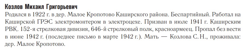 Место призыва: 07.1941г Каширский РВК, Московской обл., Каширский район.