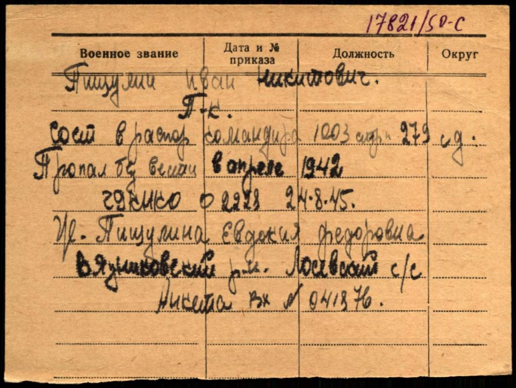 | Добрый день! Огромная просьба, помогите найти информацию о моем прадедушке Пищулине Иване Никитовиче (возможно Никитич)